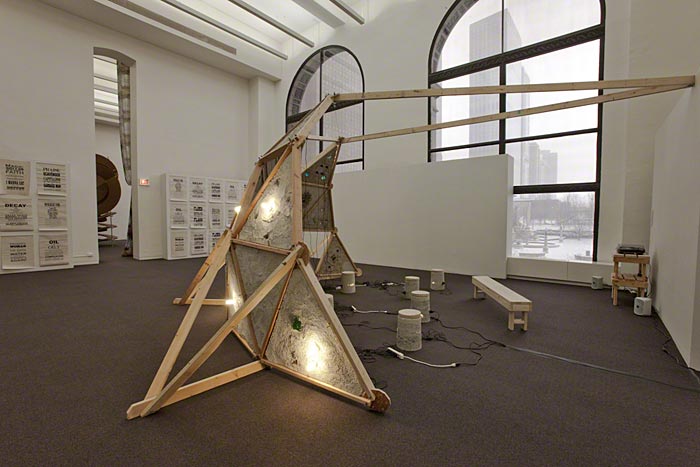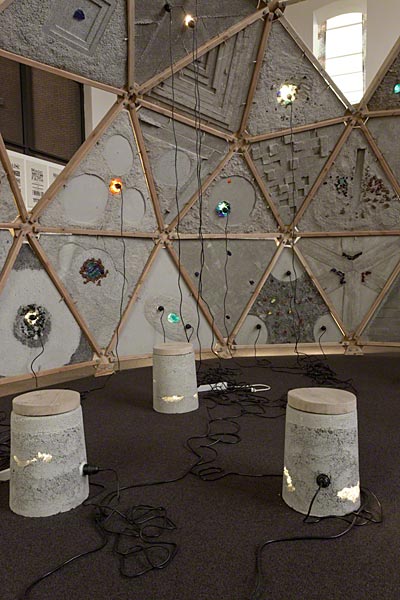 cast concrete, wood, glass, energy efficient light bulbs, hardware