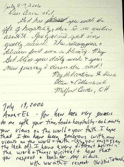 "What is your faith, are you Christian?"--Anna to C.T. (see I, A, 3, a♦)