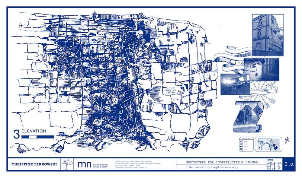 Proposals for Indestructible Living Posted by Blueprints 3a, 36”h x 64”h, blueprint on paper, mn gallery, Chicago, 2004